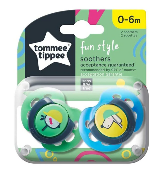 Fun Style Soothers 2-Pack (0-6 Months) - Orthodontic Silicone Baby Dummies