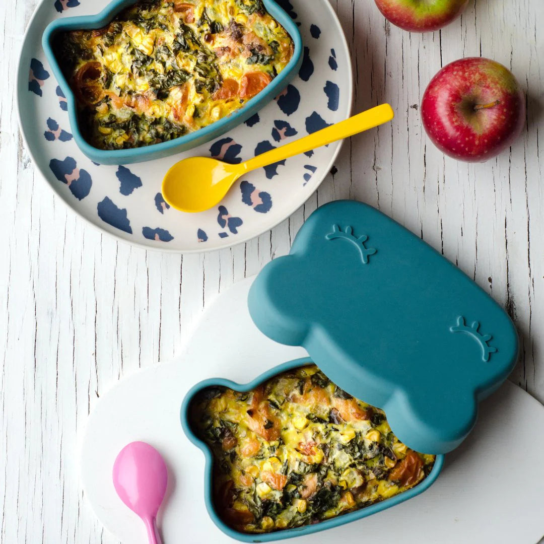 Crafted from premium, food-grade silicone, this versatile set goes from freezer to microwave to oven with ease, perfect for baking, storing, or serving your little one’s favourite snacks. Each Bear Snackie® includes a bowl and matching plate, secured with a flexible silicone strap for easy on-the-go snacking.