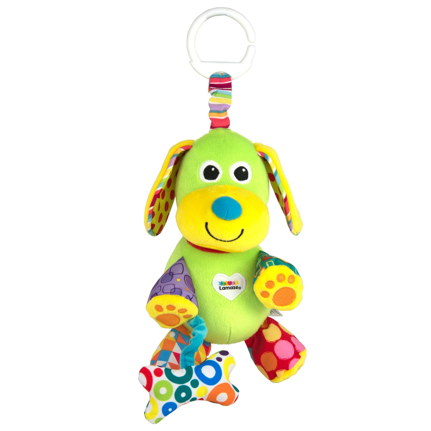 The Play and Grow Pupsqueak from Lamaze is a great toy to take along anywhere. Pet his nose to hear him 'bark'! Baby will also delight in.